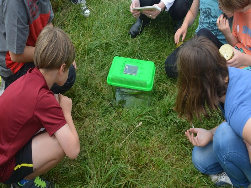 Hier drehte sich alles um genaues Hinsehen: Die Kinder bestimmten mit Hilfe des Bestimmungsschlüssels Amphibienarten, sammelten Erfahrungen bei Bacherkundungen und lernten, wie sich verschiedene Lebensräume auf die Entwicklung der Tiere auswirken.